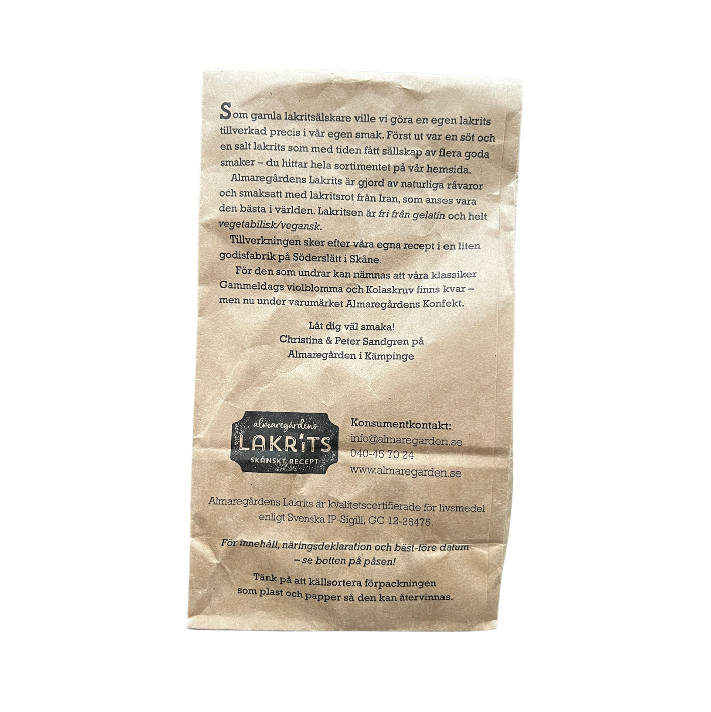 Almaregårdens Lakritz Chili ist ein Lakritz von intensivem Geschmack welches mit Chili verfeinert wurde: Naschen Sie und genießen Sie nach einem Moment die feurige Schärfe! Almaregårdens Lakritz Chili wird in Skåne in Südschweden nach einem alten Rezept hergestellt und ist frei von Gelatine und unnötigen Zusätzen. Es werden nur natürliche Rohwaren verwendet - der intensive Geschmack kommt von der Lakritzwurzel aus dem Iran, welche als die beste der Welt gilt.